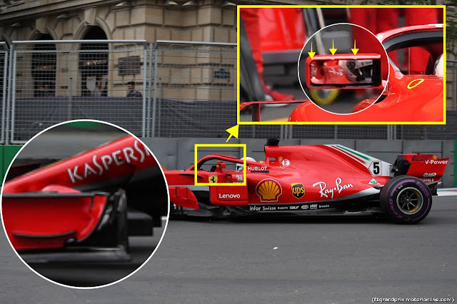 Oltre all'ala posteriore è stata utilizzata, sulle vetture di Raikkonen e Vettel, l'ala anteriore che presenta una novità nella zona degli endplate per migliorare l'efficienza aerodinamica in quando vanno a spostare, esternamente agli pneumatici anteriori, un flusso d'ari maggiore.