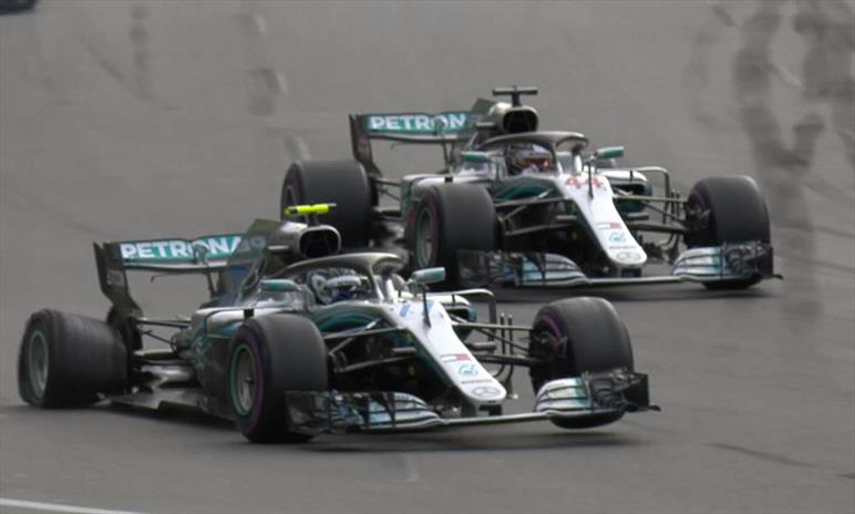 Vettel prova l'attacco su Bottas ma va lungo, spiattella, e si ritrova in P4. Passano pochi secondi e Bottas è costretto al ritiro a causa della foratura della posteriore destra.