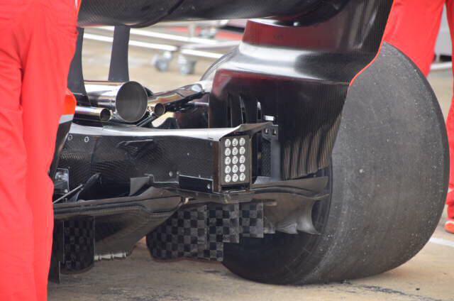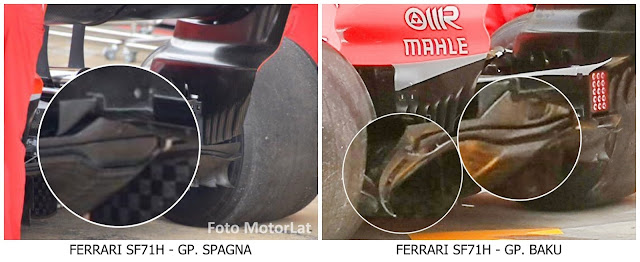 Dopo aver analizzato le modifiche apportate dalla Ferrari nella zona degli specchietti retrovisori e sul fondo ci concentriamo sul retrotreno della SF71H e in particolare sul diffusore che, rispetto alla versione utilizzata a Baku è stato modificato.