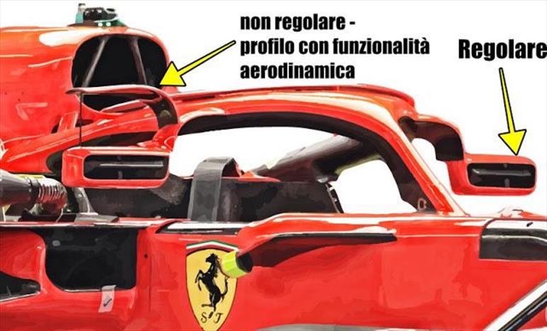 Per questo Ferrari, in vista del Gp di Monaco, doveva tornare o alla soluzione "classica" oppure rimuovere il profilo. Il Team italiano, per ora, sembra aver optato per la seconda soluzione, mantenendo quindi gli specchietti collegati all'Halo ma eliminando i due profili che avevano una funzione prettamente aerodinamica, e solo secondariamente strutturale/di sostegno agli specchietti stessi.