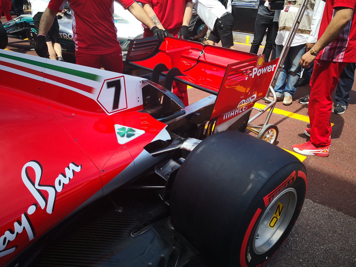 La Ferrari SF71H vista alle verifiche tecniche di quest'oggi presentava tutti gli sviluppi che il team di Maranello aveva introdotto nel Gp di Spagna compresa la sospensione posteriore con bracket di attacco del triangolo superiore al porta-mozzo in una posizione leggermente rialzata.