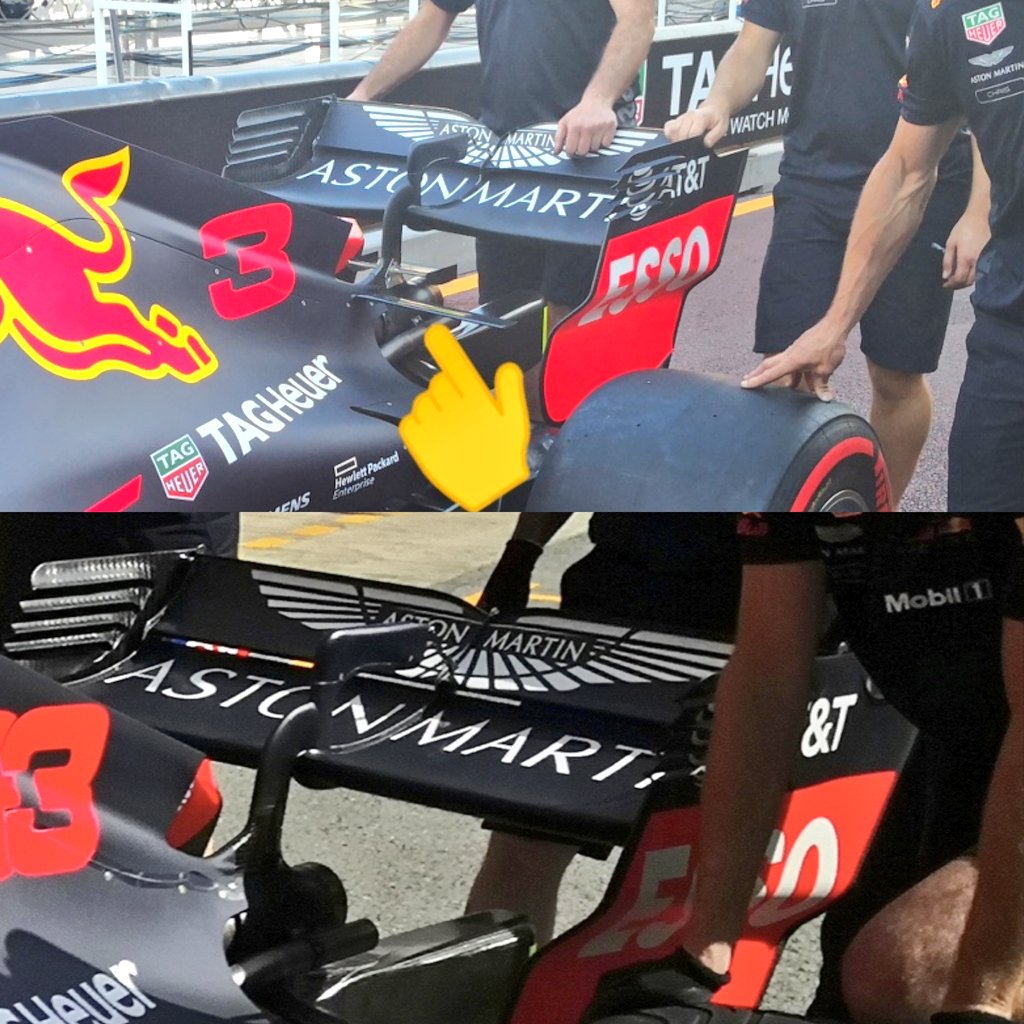 La Red Bull si è presentata sul Principato di Monaco con un pacchetto aerodinamico da alto carico. Come potete osservare dall'immagine in basso è stata cambiata l'ala posteriore che presenta un bordo d'ingresso leggermente "arcuato" nella zona centrale ed una corda maggiorata rispetto alla versione di ala utilizzata in questo inizio di stagione.