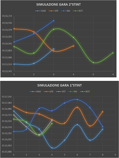 Nell'analisi del secondo stint di simulazione di gara non si notano particolari sorprese e vengono confermati i dati riscontrati nel grafico in alto.