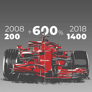 F1 2008 VS. F1 2018 - IN FORMULA 1 SPAZI DI FRENATA DIMINUITI DEL 22% E DECELERAZIONE CRESCIUTA DEL 12 % IN 10 ANNI