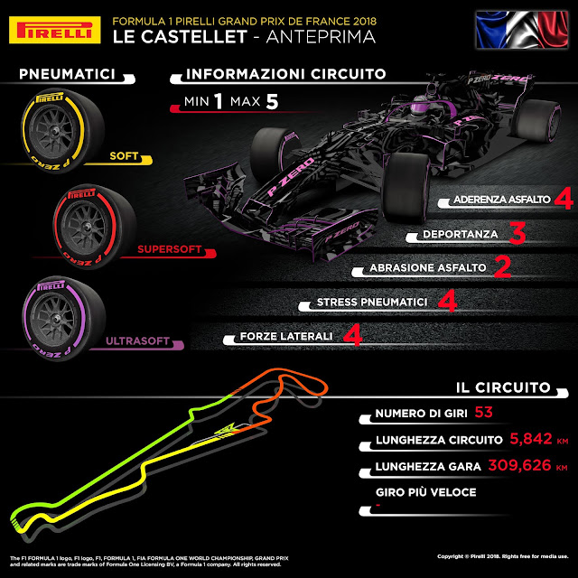 La prima tripletta di gare consecutive nella storia della Formula 1 inizia con il ritorno di un circuito leggendario, quello di Le Castellet. Per il Gran Premio di Francia, che si correrà al Circuit Paul Ricard per la prima volta dal 1990 e sarà seguito nei due weekend successivi dalle gare in Austria e Gran Bretagna, Pirelli ha nominato P Zero Yellow soft, Red supersoft e Purple ultrasoft. Il tracciato è una novità per Team e piloti, anche se viene utilizzato frequentemente per i test grazie alle condizioni meteo ideali e alle strutture all'avanguardia.