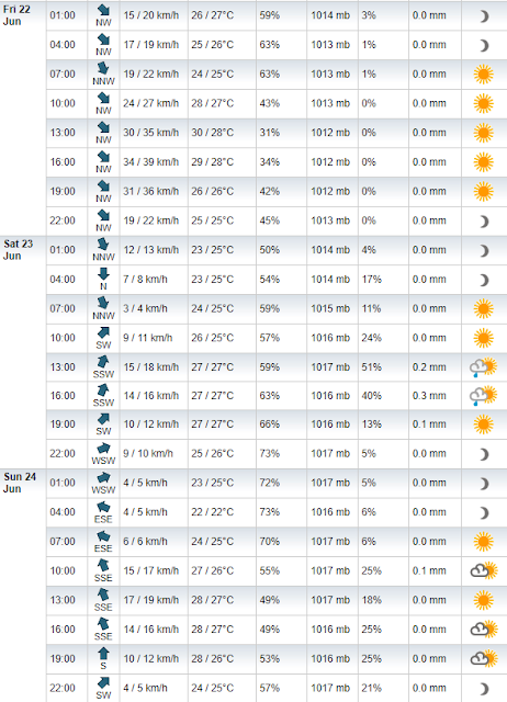 A livello meteo non dovrebbe essere un fine settimana complicato poiché sono attese delle ottime giornate con qualche piccolo dubbio sulle ore centrali della giornata di domenica. Le temperature ambientali saranno costantemente superiori ai 25°C nelle sessioni pomeridiane con la giornata di venerdì che ad oggi sembrerebbe la più calda (attesi 30°C nell'aria). Domenica, giorno della gara, sarà invece la giornata più "fresca" con una massima che toccherà solamente i 28°C. Attenzione al vento forte che potrebbe disturbare i vari piloti.