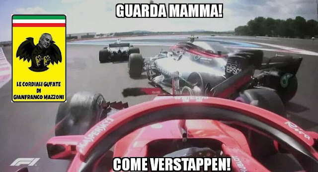 Trofeo Gp Francia. Voto: maivistonulladisimile. Appena Hamilton, Verstappen e Raikkonen hanno visto il King Kong tricolore con la gomma Pirelli fra le mani, non credevano ai loro occhi. Momenti di panico…gelo sul podio…per un attimo i tre piloti hanno pensato di rinunciare al trofeo ed ai punti della gara. Raikkonen ha chiosato: “A me basta solo lo Champagne”, le freccine di Hamilton erano sconvolte, Verstappen pensava fosse un giocattolo come quelli che gli regalava il “tenero” babbo sino a qualche mese fa. Poi, sotto lo sguardo feroce di Alesi hanno fatto finta di niente e vabbè…