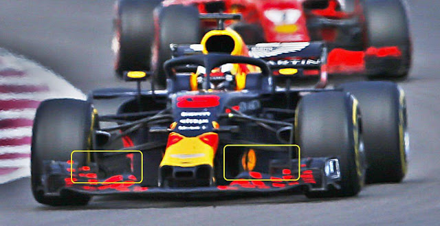 Partendo da RedBull, il Team anglo austriaco in questo fine settimana si è confermato terza forza in pista nonostante gli sviluppi aerodinamici introdotti sulla RB14. Sviluppi che sono stati testati durante le libere per poi essere utilizzati in qualifica e gara da Verstappen e da Ricciardo. Aggiornamenti che, come potete osservare dalle immagini, hanno coinvolto la zona dei bargeboards e il diffusore che è stato cambiato nella zona centrale.