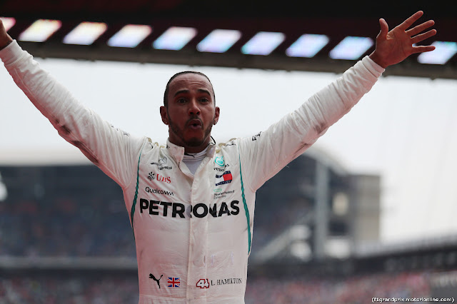Ebbene a distanza di 15gg ci ritroviamo nuovamente Lewis in Germania (a casa di Seb stavolta!) ad occupare lo spazio che lo circonda nella stessa posizione che abbiamo visto in Inghilterra solo con umori completamente ribaltati: se in UK al sabato era in ginocchio per la gioia, in Germania era in ginocchio perchè il suo cavallo si era azzoppato e ormai credeva di aver perso il mondiale ("su questa pista è impossibile sorpassare".....).