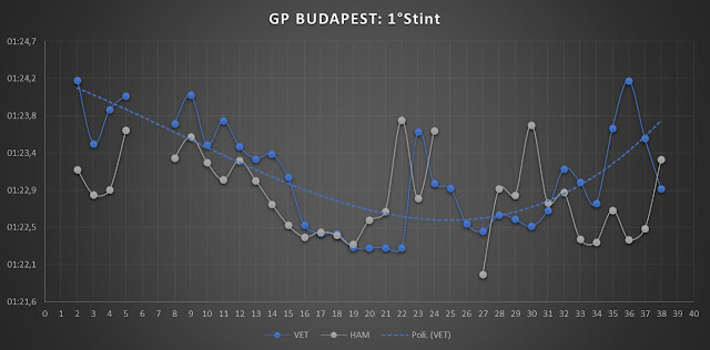 La scelta del pit stop di Vettel non è stata fatta invece nella giusta finestra poiché, tempi alla mani, doveva essere anticipata di qualche giro per evitare i doppiaggi che, in una pista come quella di Budapest, costano sempre molti secondi e effettivamente hanno fatto perdere del tempo prezioso alla Ferrari numero 5 del tedesco; precisamente 5 secondi, persi principalmente nel sorpasso di Sainz e quello di Ocon. Senza contare che appena Mercedes si è accorta dell'errore che stava commettendo Ferrari ha concesso a Bottas la mappatura più spinta della Power Unit che gli ha permesso di abbassare i crono di oltre 1 secondo.