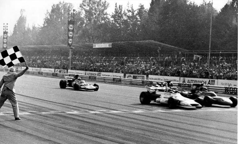 Monza, dove il Poeta lombardo imprigionò una donna che non poteva accettare il destino che altri le avevano assegnato, o dove un Campione del mondo non fece in tempo a sapere di esserlo; dove una curva che ora non c’è più quasi capovolgeva l’orizzonte, e le bandiere erano ali al folle volo, per ogni giro in cui il filo dell’equilibrio pretende la perfezione a cui l’imprevisto tende lo sgambetto, mentre i cappellini si girano a seguire una scia, invocando o maledicendo il dio dei sorpassi e dei freni troppo caldi, come gli hot dog dei ragazzini che hanno le guance arrossate.