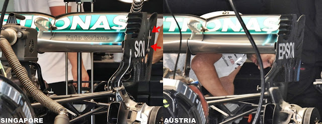 Dopo la novità delle appendici aerodinamiche aggiunte sull'Halo, è ora di spostarci sul posteriore della Mercedes W09. Dalle immagini in arrivo da Singapore si può infatti notare come sia stata aumentata nella lunghezza l'ultima soffiatura sugli endplate dell'ala posteriore.