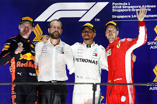 Lewis Hamilton vince alla grande il gran premio di Singapore e allunga nel mondiale! Seconda posizione per Verstappen che precede Vettel sul podio. A seguire Bottas, Raikkonen e Ricciardo.