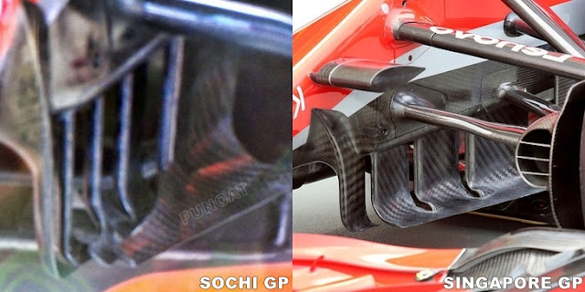 In casa Ferrari sono tante le modifiche aerodinamiche introdotte sulla SF71H per questo GP di Russia. All'avantreno, oltre alla nuova ala anteriore analizzata nella giornata di ieri, sono stati portati a Sochi dei nuovi turning vanes.
