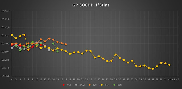 Analizzando il ritmo gara è stato sorprendente il passo tenuto da Verstappen con gomme Soft, mescola perfetta per gestire l'alto carico di carburante, e che vedendo il passo poteva tranquillamente finire la gara senza effettuare il pit stop previsto dal regolamento.