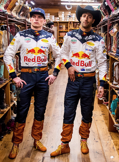 Tute Red Bull. Voto: sublime obbrobrio. Gli austriaci non sono il top in quanto a stile ed eleganza. Però…una tuta brutta come quelle che i poveri Max e Daniel hanno dovuto indossare nel fine settimana a Dallas…non l’avevo mai vista.