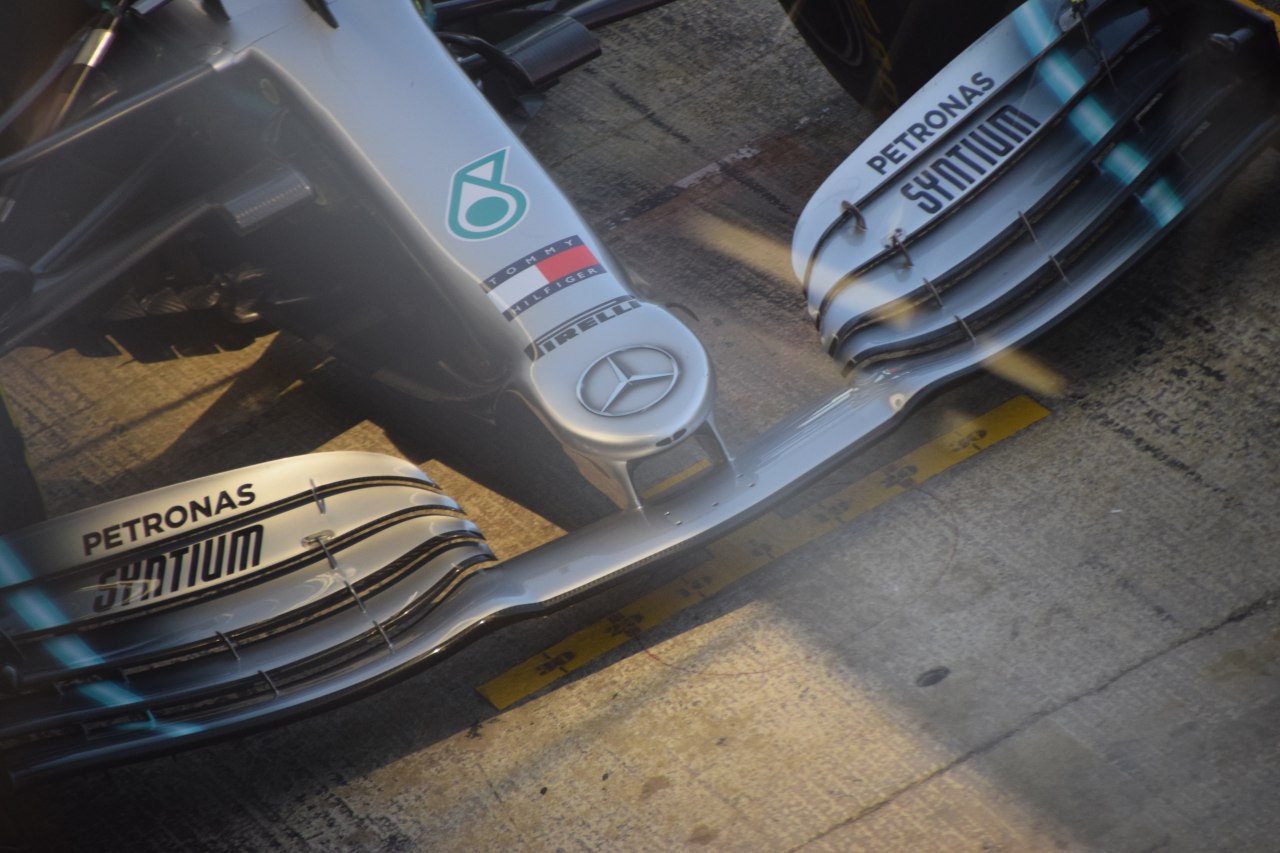 Inizia la seconda settimana di test pre-stagionali al circuito di Montmeló, e frettolosamente tutti i team si lanciano in pista per provare nuove parti delle vetture. Su tutte spicca Mercedes che, dopo aver raccolto una miriade di dati durante le passate sessioni, oggi cerca un gran riscontro sulle molteplici novità portate. Effettivamente il Mercedes W10 cambia quasi pelle, e si presenta con un nuovo fondo piano, nuovi bargeboard, nuova versione di alettone anteriore e una differente configurazione dei sidepost. Sono comparsi anche vari flap sul corpo vettura come quelli collocati all’uscita del sistema S-duct, e sull’halo.