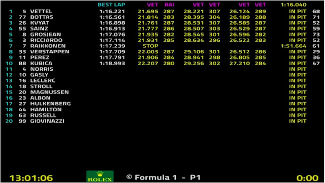 Dopo lo “sciagurato” mercoledì che Sebastian Vettel ha dovuto affrontare per il problema verificatosi al cerchione anteriore sinistro, la mattinata del tedesco è stata molto produttiva. Con la sua SF90 il quattro volte campione del mondo ha inanellato 68 giri, ottenendo nella sua migliore prestazione il tempo di 1:16:221 montando il compound più soffice (C5). Ancora più indicativo peró é il tempo ottenuto da Sebastian con le C3 (1:16:720), che dimostra un margine di miglioramento molto piú ampio. La rossa continua a dimostrare tanta competitività e facilità nella guida, sia sul giro secco che sui long run, dove al momento sembrerebbe (il condizionale è d’obbligo nei test) essere davanti a tutti, Mercedes compresa.
