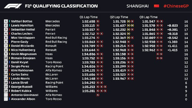 Valtteri Bottas è riuscito a fare sua la pole position del Gp della Cina riuscendo a battere Lewis Hamilton che, in questo fine settimana, non è stato il cecchino che abbiamo imparato a conoscere nella sua gloriosa carriera. La prima posizione di Bottas non è stata una vera e propria sorpresa in quanto, ad eccezione delle FP1, è sempre stato in cima alla lista dei tempi.