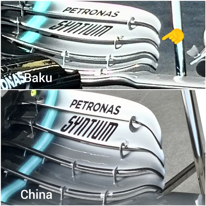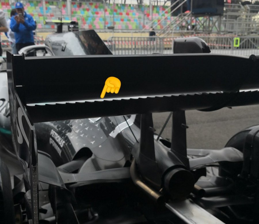 Mercedes ha portato in pista per questo Gp di Baku un'ala posteriore piuttosto scarica che era stata provata durante i test post Gp del Bahrain. Non dobbiamo considerare questa ala come una vera e propria modifica in quanto trattasi semplicemente di adattamento del carico aerodinamico alle caratteristiche della pista.