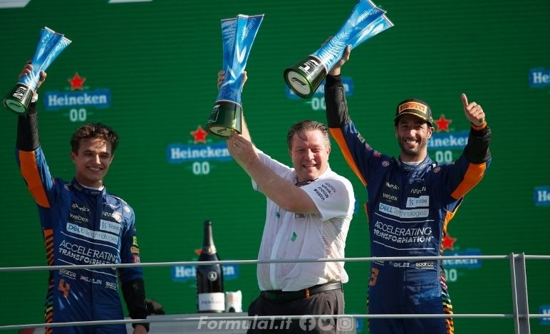 Daniel Ricciardo vince il Gp d'Italia davanti al compagno Lando Norris su McLaren, stagione 2021