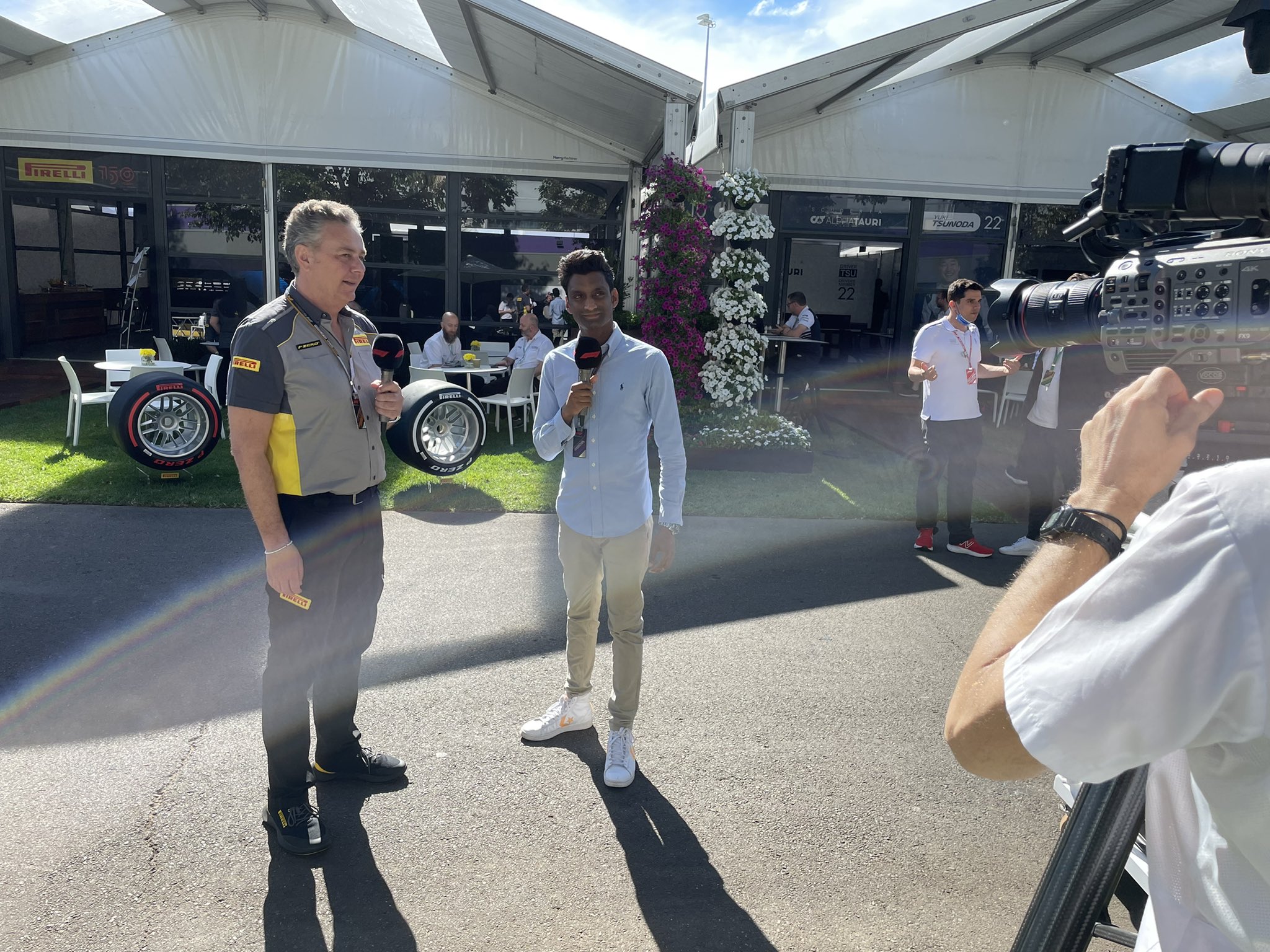 Mario Isola, direttore motorsport Pirelli, viene intervistato da 'F1 TV' durante il weekend australiano (foto: Twitter, Pirelli)