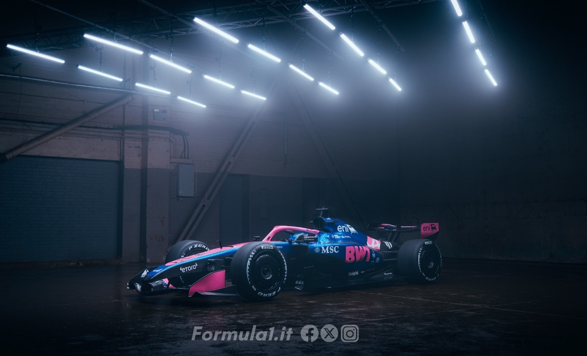 La vettura, che sarà affidata a Franco Colapinto e Pierre Gasly è ufficialmente la prima della gestione di Flavio Briatore. Sotto al cofano da quest'anno non ci sarà più un motore proprietario, ma monterà una power unit Mercedes.